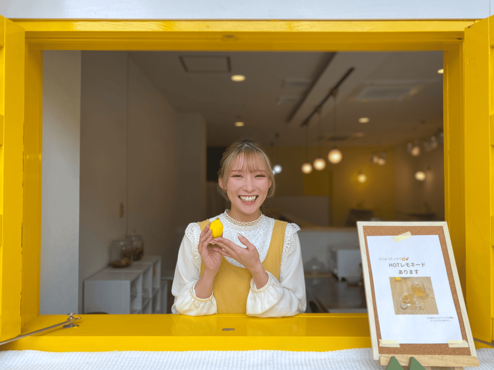 The bright, cheerful interior with white and yellow as its base color. cafe&bar Lemon" opened last year in Chuo-cho, Oita City. The owner, Ms. Natsumi Suga, is well known for her delicious handmade lemonade.