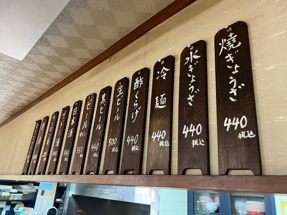 店内に並ぶメニューは、焼ぎょうざ・水ぎょうざ・冬は中華そば、夏は冷やし中華・おつまみの酢くらげ・お酒類と極めてシンプルだが、外せないのはやはり餃子。白雅の餃子は、その独特のもちもちとした皮と、たっぷりの野菜を使った具材が特徴で、一度食べたらまた食べたくなる味わいである。
