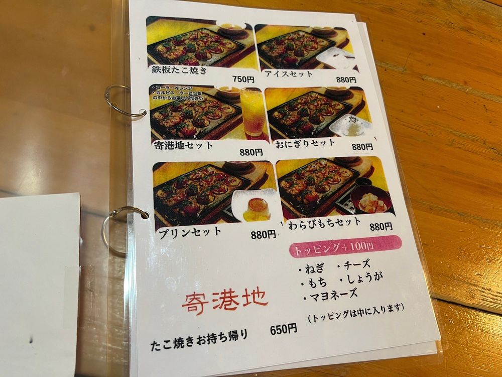 メニューは、定番のたこ焼きの他にも、プリンセット、わらびもちセット、おにぎりセット、アイスセットなどがある。特に手作りプリンのセットは、たこ焼きとの相性も抜群で、多くの常連客に愛される人気メニューなんだそう。