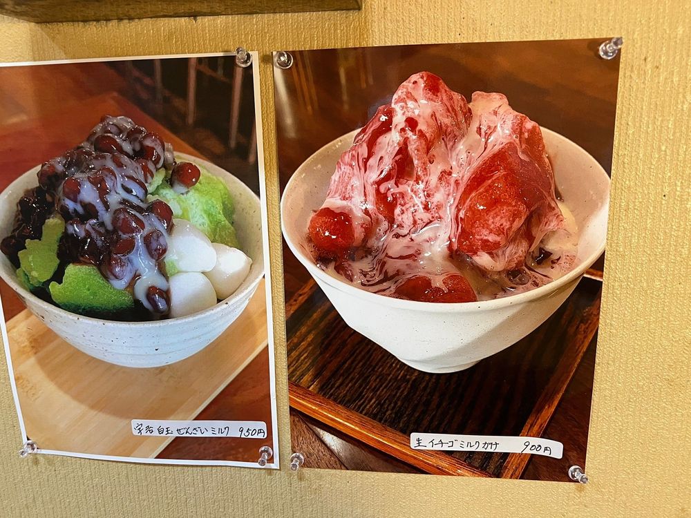 夏には、手作りのぜんざいを使った氷ぜんざいも人気なんだそう。今治市朝倉産のいちごを使った生いちごのかき氷も評判だそうで、新鮮な果物と手作りのシロップが絶妙なバランスで、若いお客さんからも人気を集めている。