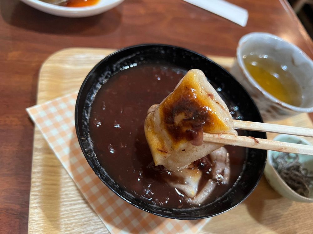 手作りのぜんざいも寄港地の人気メニュー。甘さ控えめで、もちもちのお餅と一緒に楽しむぜんざいは、懐かしさで心温まる一品だ。