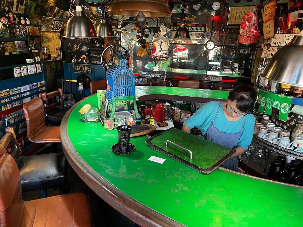 마니아나의 매력 중 하나는 방대한 레코드 컬렉션입니다. 케이코는 "마스터는 젊은이들을 지원하는 것을 좋아해서 장래에 재즈 카페를 열고 싶어하는 젊은이들에게 레코드를 나눠주곤 했어요. 지금도 많은 음반이 가게에 남아 있습니다.