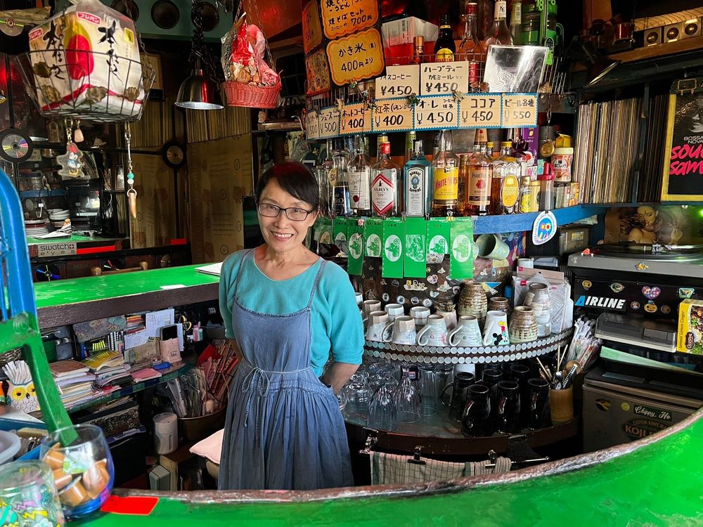 그는 "이 좁은 평면도 덕분에 모든 손님을 볼 수 있습니다. 이것이 이 가게를 독특하게 만드는 요소입니다. 현재 주인장의 아내인 케이코 씨는 "모든 손님이 서로를 볼 수 있도록 작은 공간을 과감하게 만들었습니다. 모든 손님이 서로를 볼 수 있는 좁은 공간과 카운터를 과감히 만들어 처음 보는 손님이라도 서로 이야기를 나눌 수 있도록 했습니다.