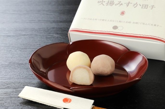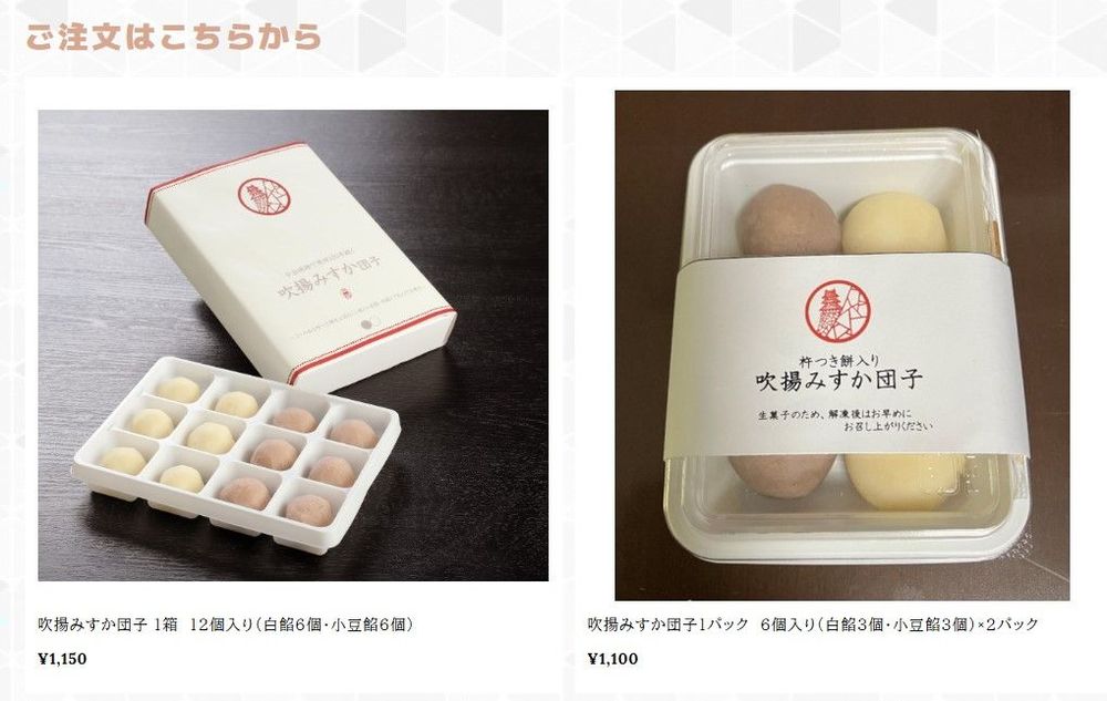 메이지 시대부터 이마바리성 성곽 안의 찻집에서 사랑받아 온 명물 '후쿠야미스카단코'는 100년이 넘은 지금도 이마바리성을 바라볼 수 있는 곳에서 테이크아웃 형태로 판매되고 있다.